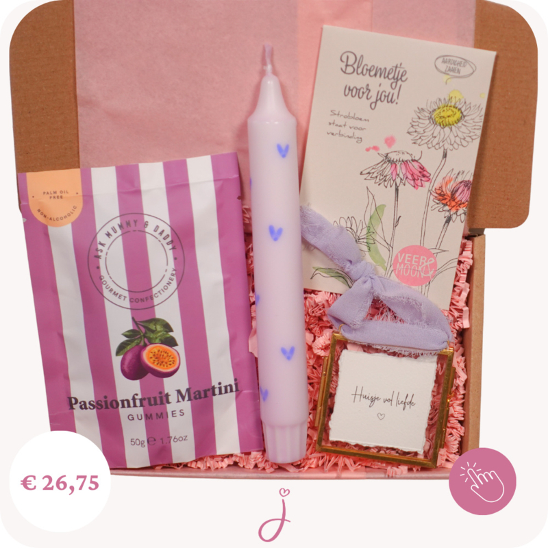 Liever zelf een cadeaubox samenstellen, dat kan! Je kunt zelf de items selecteren en bij elk items staat vermeld of het door de brievenbus past. Ben je op zoek naar een groter cadeau? Bekijk onze kant-en-klare cadeauboxen.