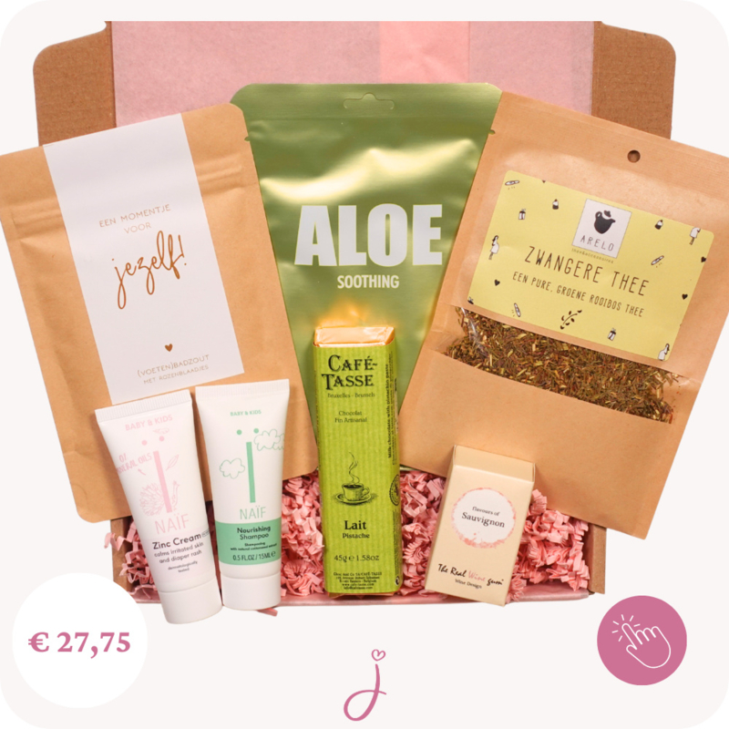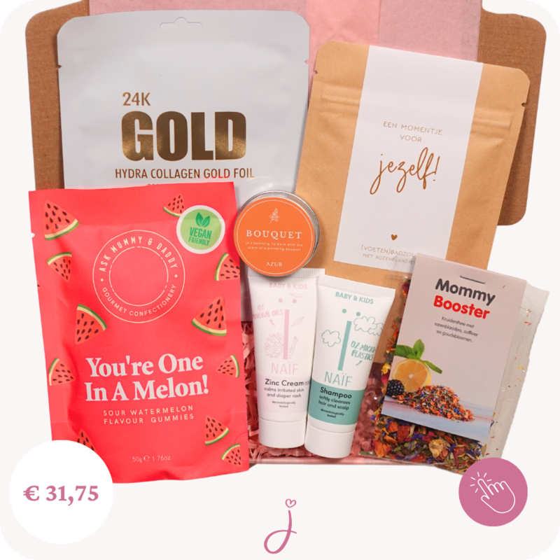 Zwangerschap cadeau Mom care - Brievenbus cadeauMet dit zwangerschap cadeau geef je de aanstaande moeder een heerlijk pakketje vol ontspanning en self care. Een liefdevol brievenbuscadeau om haar te feliciteren met de zwangerschap.